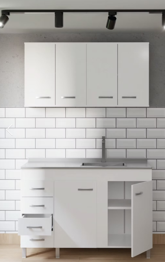 Bajo mesada + Alacena y Mesada de acero inoxidable de 1,20m con bacha