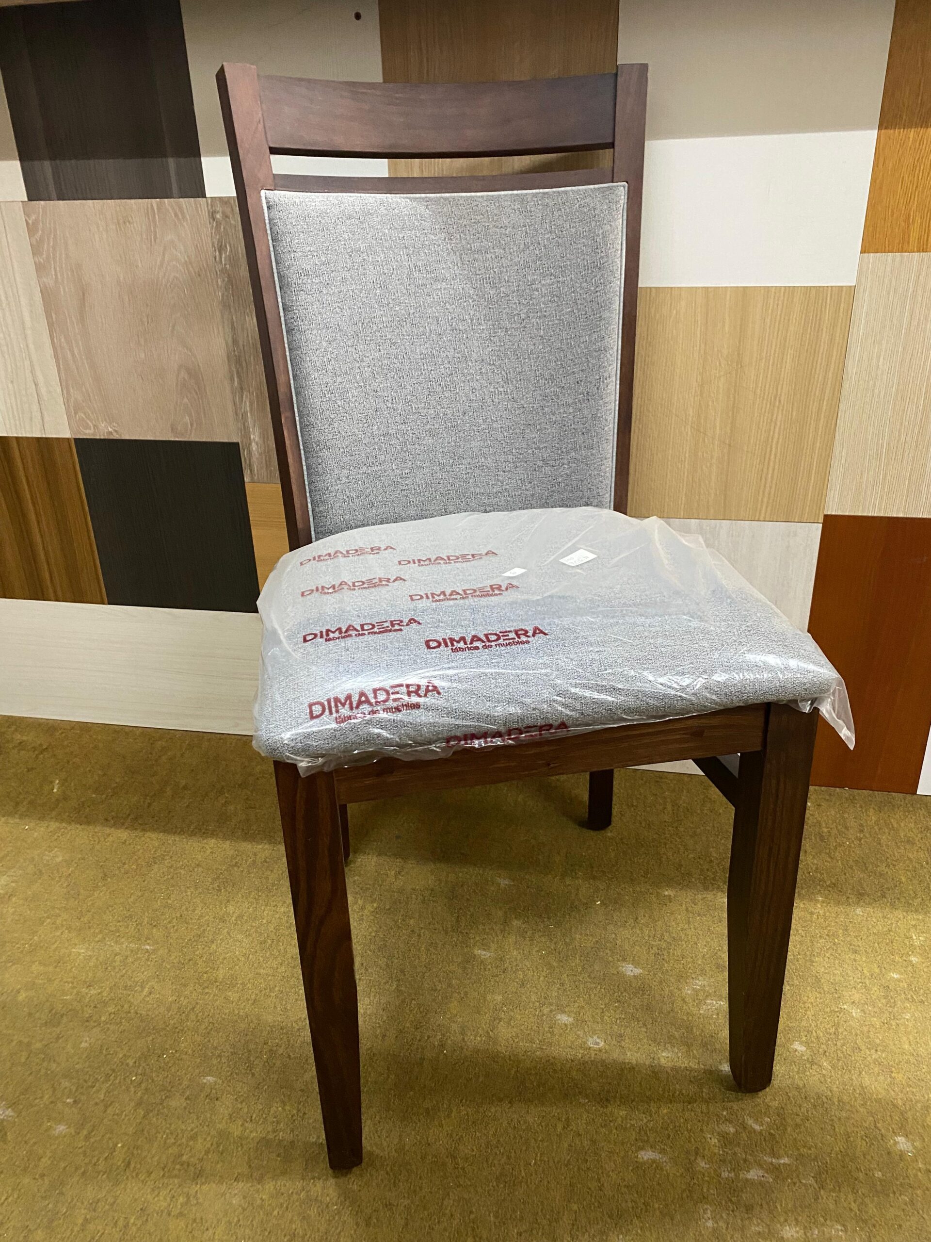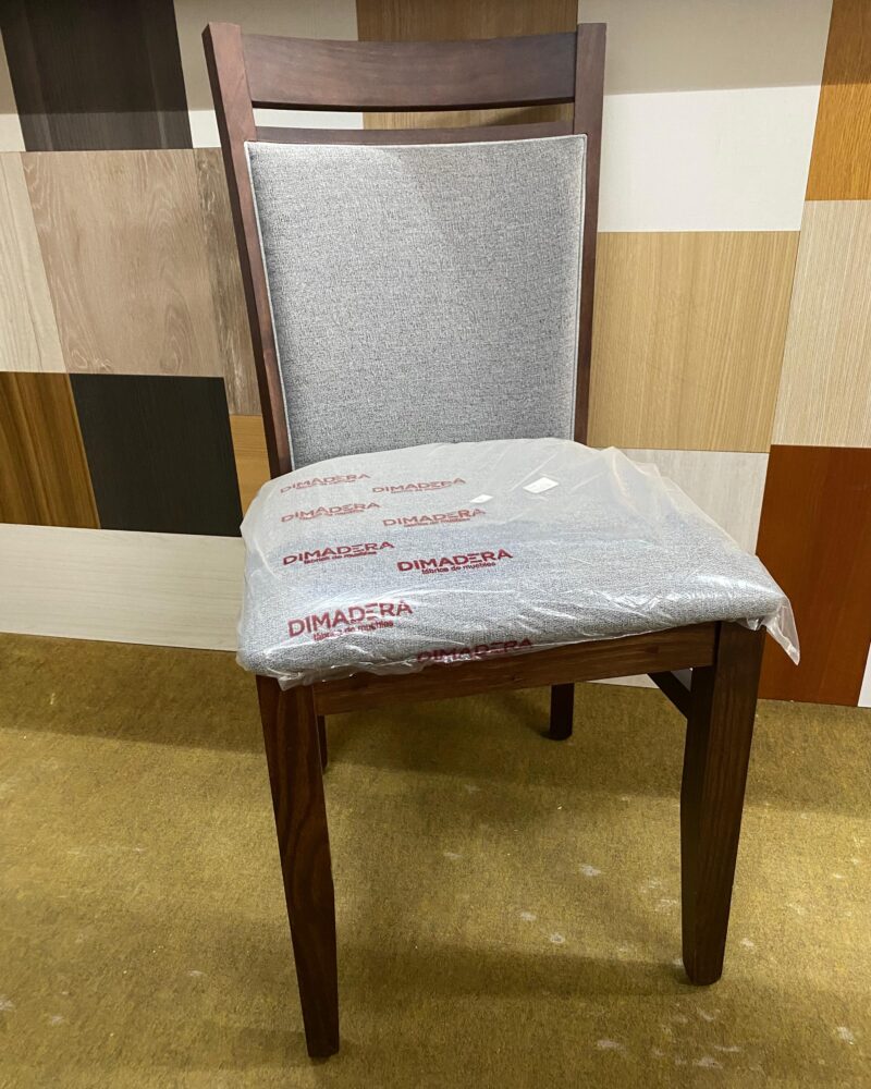 – 6 sillas Nossa con asiento y respaldo tapizado en Chenille liso ceniza