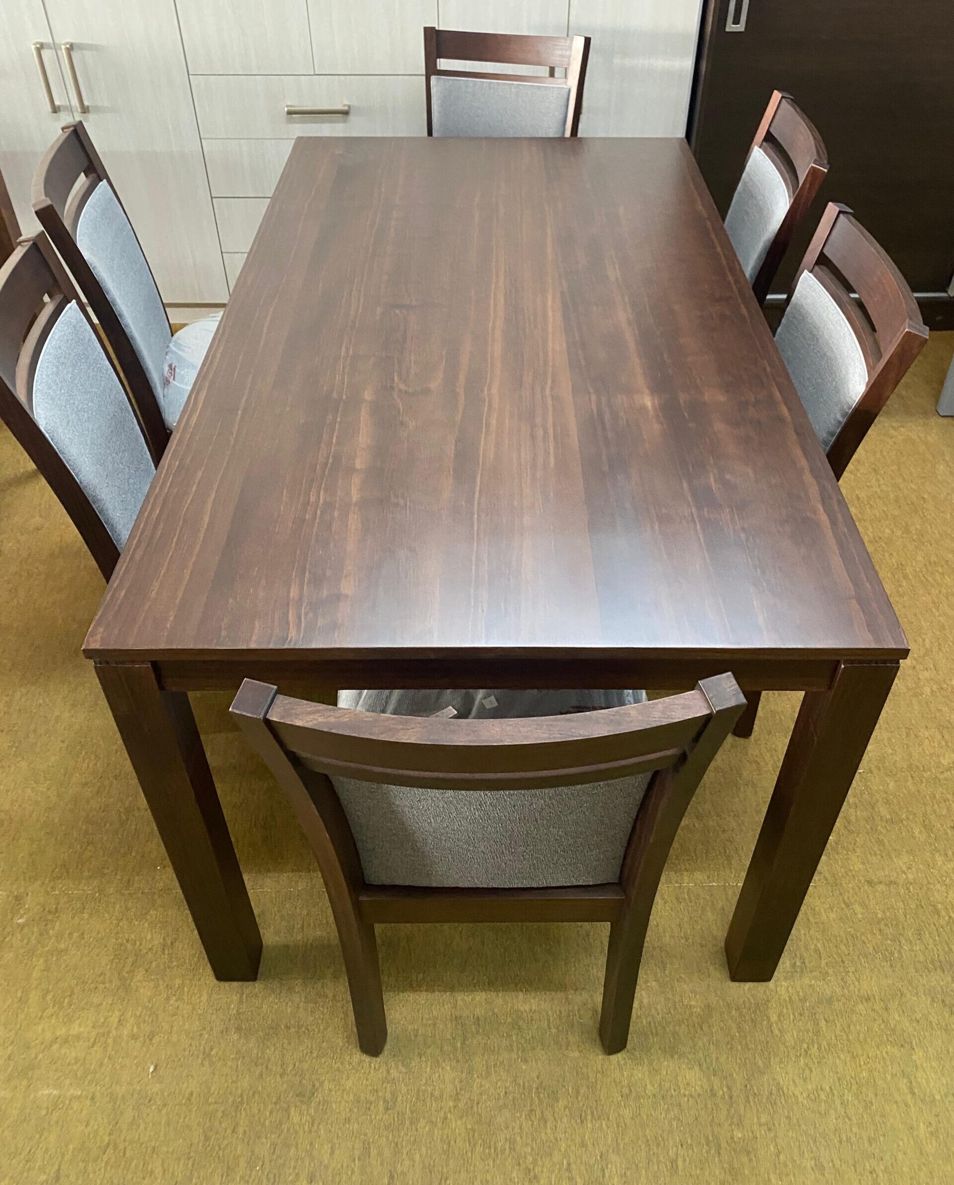 Juego de comedor lustrado tono nogal