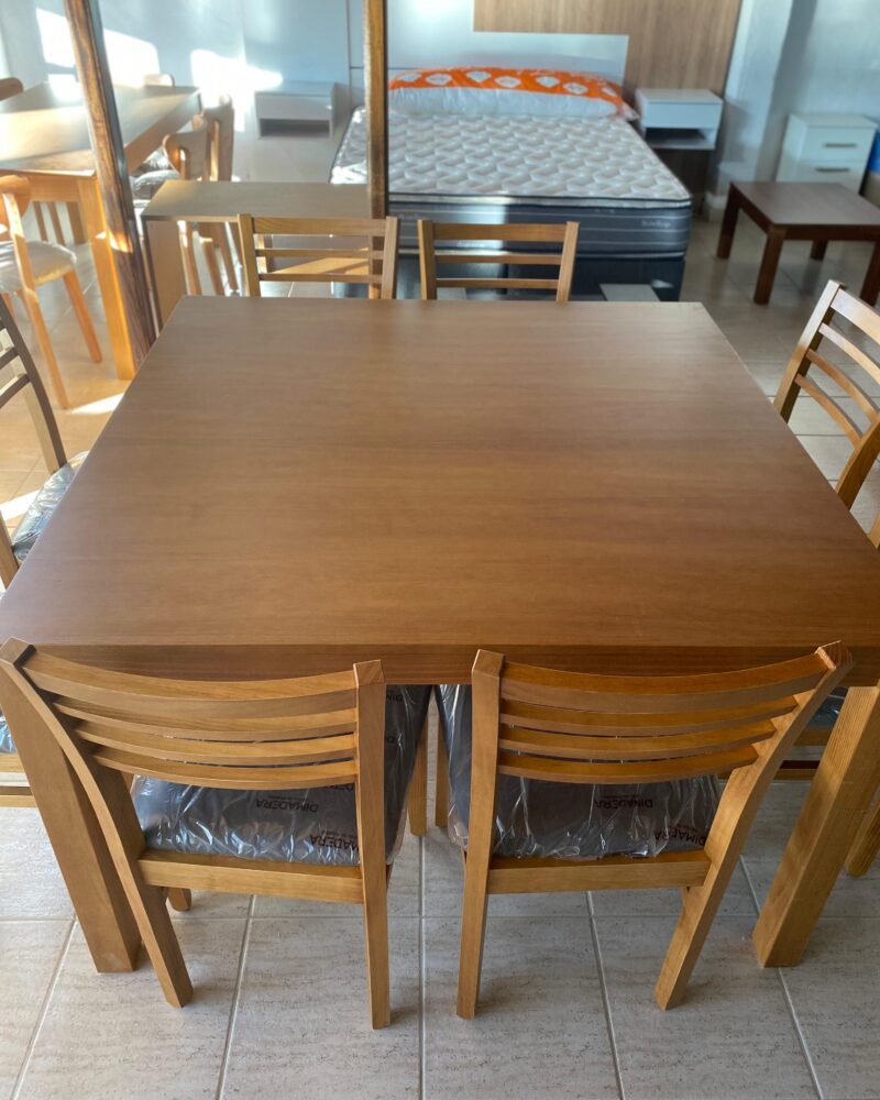 Juego de comedor lustrado en tono miel